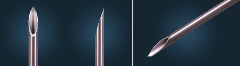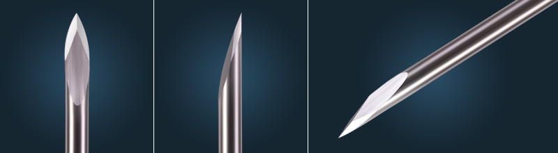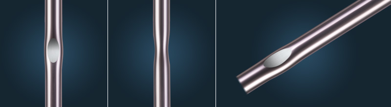日本注射针工业(株)成功开发出减少穿刺阻力(减轻疼痛)的AVF针(透析针),并获得专利。 这次取得的专利,是在确保侧孔的流道截面积的基础上,抑制穿刺阻力(减轻疼痛)的技术。 ※实现与没有侧孔的同形状的柳叶刀点相同程度的穿刺电阻值。